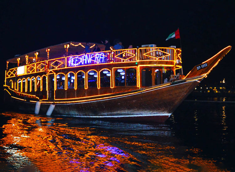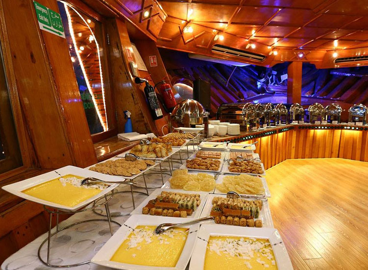 Welcoming you to the dhow with a red carpet welcome making you feel like a celebrity, this dhow dinner in Abu Dhabi set sail in the evening. Indulge yourself with a diversity of cuisines with the buffet style dinner and enjoy a fabulous night. With a friendly crew, we will make you feel like a VIP with an exceptional service promising you a magical evening with our Dhow Cruise Dinner in Abu Dhabi.
